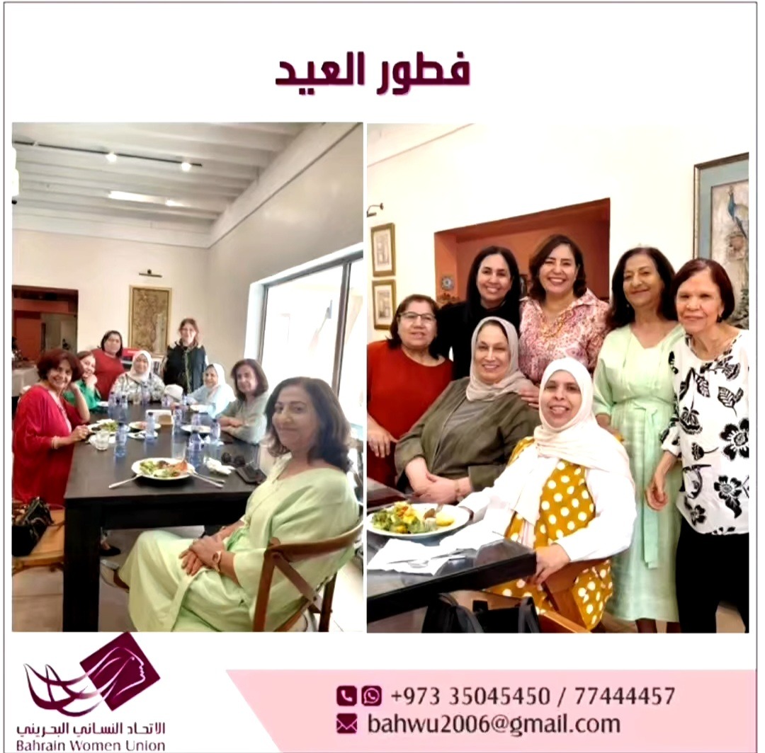 استمرارا في تعزيز التواصل المجتمعي بين الاتحاد النسائي البحريني والجمعيات النسائية المنظوية للاتحاد ودعما لأنشطة الاتحاد نظمت لجنة العلاقات الداخلية والفعاليات في الاتحاد فعالية " فطور العيد "وذلك صباح يوم الأربعاء الموافق 18 يونيو 2025 ، في مطعم كابوتشينو في منطقة سار .