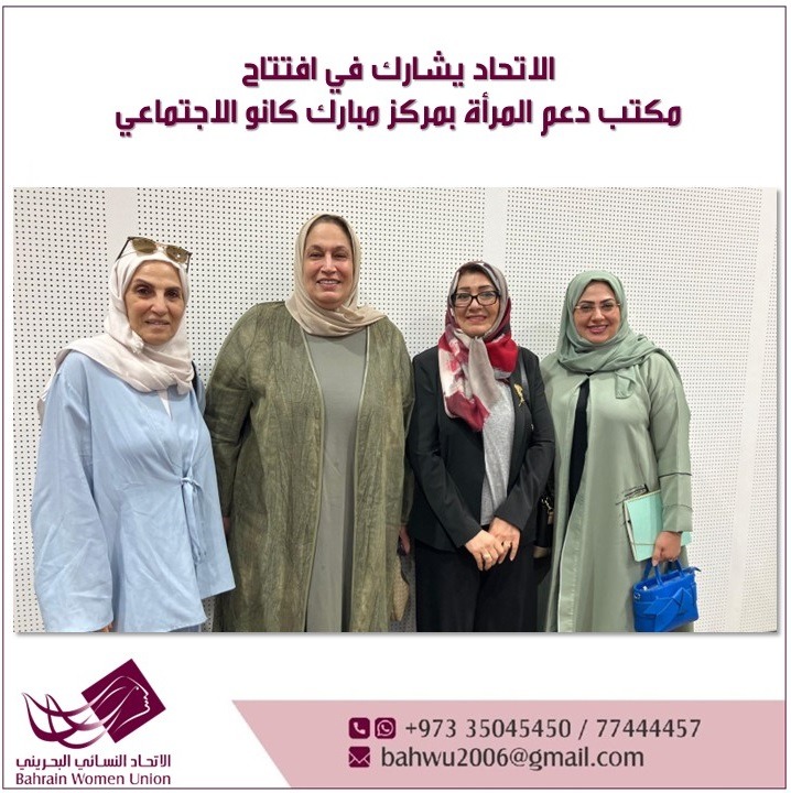 The Bahrain Women Union participated in the opening ceremony of the Women's Support Office at the Mubarak Kanoo Comprehensive Social Center, which was organized by the Supreme Council for Women on Wednesday morning, September 17, 2025, in the presence of His Excellency the Secretary-General of the Supreme Council for Women, His Excellency the Minister of Social Development, and a number of officials and stakeholders from both sides.