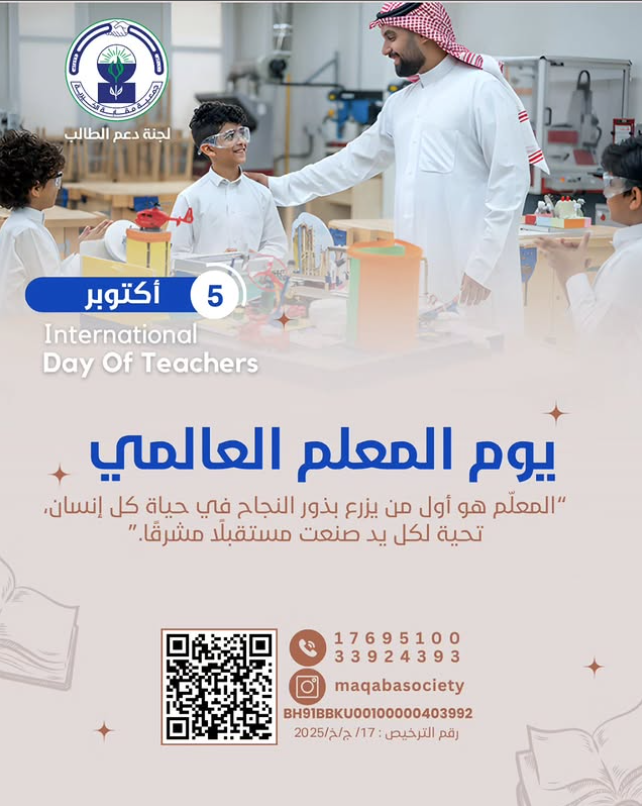 The Maqaba Charity Association extends its thanks and appreciation to all teachers, both male and female, for their unlimited giving and their great role in building generations and shaping a bright future for our homeland and nation.